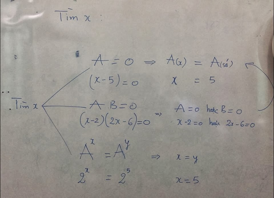 | * B1. Dạng toán: A.B = 0 => A khác 0 => B = 0 * B2. Mở ngoặc có dấu " - " trước ngoặc, phải đổi dấu tất cả bên trong ngoặc. * B3. A(x) = A(chữ số) => * B4. Kiểm tra miền xác định của x. * B5. Khẳng định kết quả tìm được |
