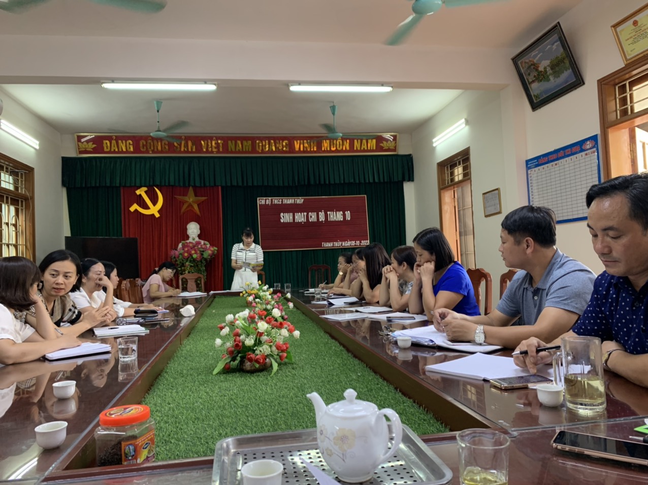 Tại buổi sinh hoạt, đồng chí Nguyễn Thị Nhung- ĐUV, Bí thư chi bộ đã đánh giá hoạt động của chi bộ trong tháng 9, triển khai các công văn chỉ đạo của các cấp uỷ Đảng. Chi bộ được nghe các nội dung trọng tâm của bản tin nội bộ và bản tin Thanh oai, kế hoạch trọng tâm của chi bộ trong tháng 10.