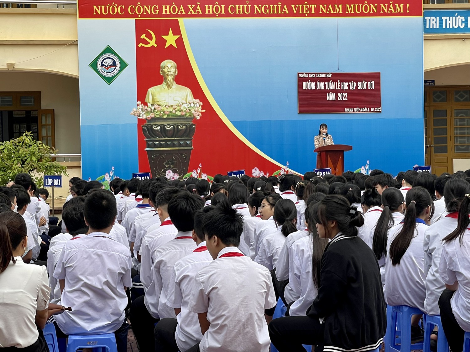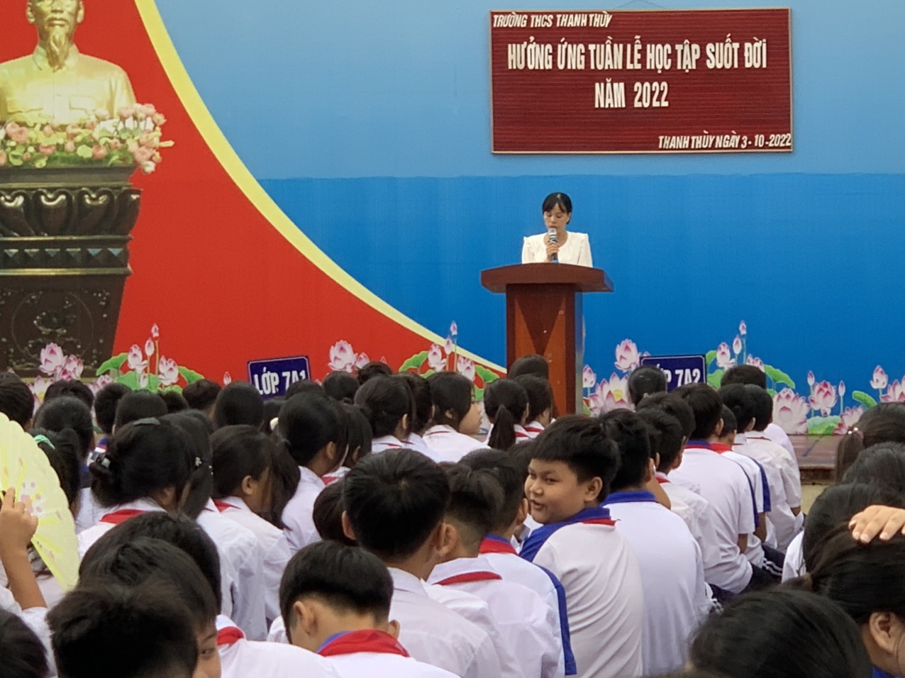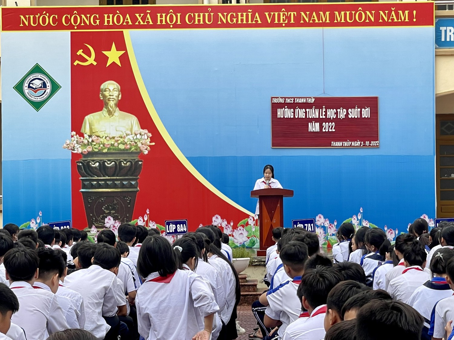 Thực hiện kế hoạch của UBND huyện Thanh oai về việc tổ chức Tuần lễ hưởng ứng học tập suốt đời năm 2022; sáng ngày 03/10/2022 trường THCS Thanh Thuỳ tổ chức Tuần lễ Hưởng ứng học tập suốt đời năm 2022 với chủ đề: “Thúc đẩy chuyển đổi số phục vụ cho học tập suốt đời sau đại dịch COVID -19”.