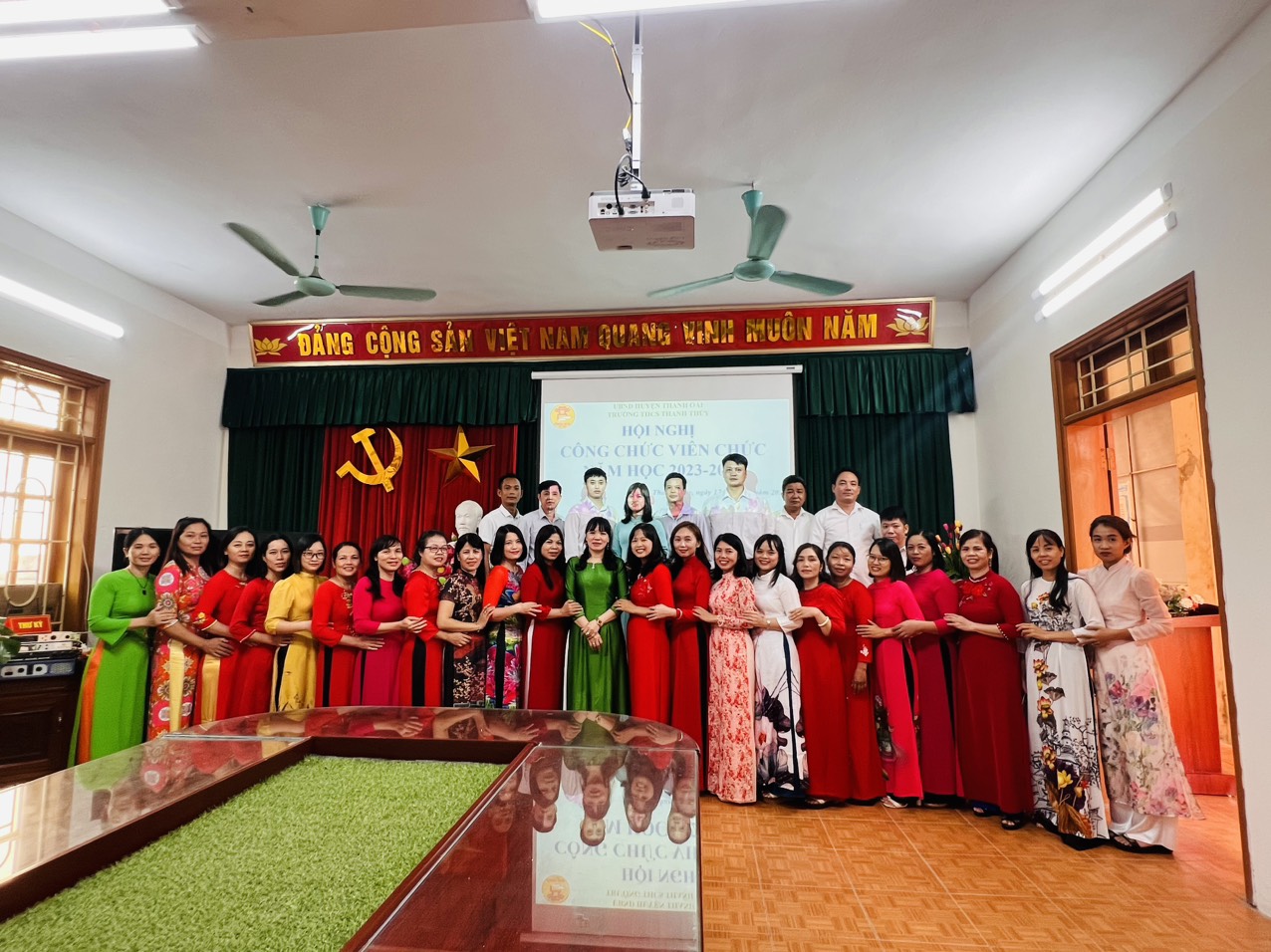 Thực hiện hướng dẫn về việc tổ chức Hội nghị cán bộ, công chức, viên chức; Hội nghị người lao động năm học 2023- 2024 của ngành giáo dục Huyện Thanh Oai. Được sự chỉ đạo của Chi bộ, lãnh đạo nhà trường, sáng ngày 17/10/2023,trường THCS Thanh Thuỳ đã long trọng tổ chức Hội nghị cán bộ, viên chức (CB, VC) năm học 2023-2024. Tham dự Hội nghị có 38 cán bộ, viên chức của nhà trường. Đây cũng là dịp quan trọng để các đồng chí cán bộ, giáo viên, nhân viên trong nhà trường được nói lên tiếng nói, suy nghĩ, nguyện vọng của bản thân cũng như của nhóm, tổ chuyên môn; tham gia đóng góp ý kiến cho Báo cáo kiểm điểm thực hiện nghị quyết Hội nghị CB, VC năm học 2022-2023;Phương hướng, kế hoạch và biện pháp thực hiện nhiệm vụ năm học 2023-2024 nhằm phát huy quyền làm chủ của người lao động, góp phần xây dựng cơ quan văn hoá, trong sạch, vững mạnh. Để điều hành chương trình, Hội nghị đã bầu ra Đoàn Chủ tịch gồm có 03 đồng chí: