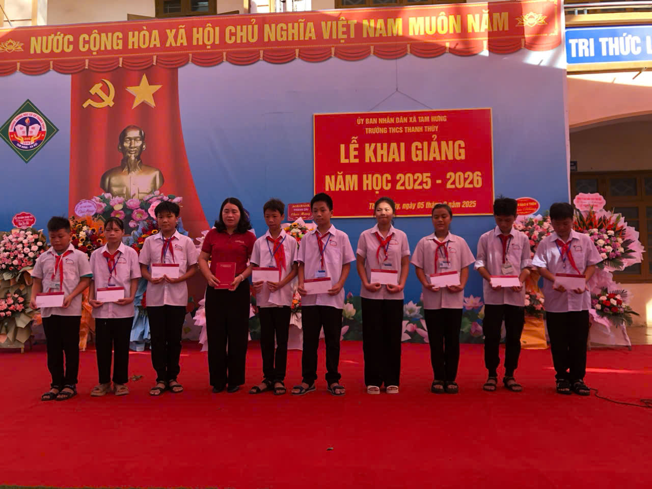 Bên cạnh đó, nhằm kịp thời động viên tinh thần vượt khó vươn lên, các tổ chức đoàn thể cùng nhà trường đã trao nhiều suất quà ý nghĩa cho học sinh có hoàn cảnh khó khăn. Những phần quà không chỉ mang giá trị vật chất mà còn chứa đựng tình cảm sẻ chia, tiếp thêm động lực để các em phấn đấu học tập, không ngừng nuôi dưỡng ước mơ.